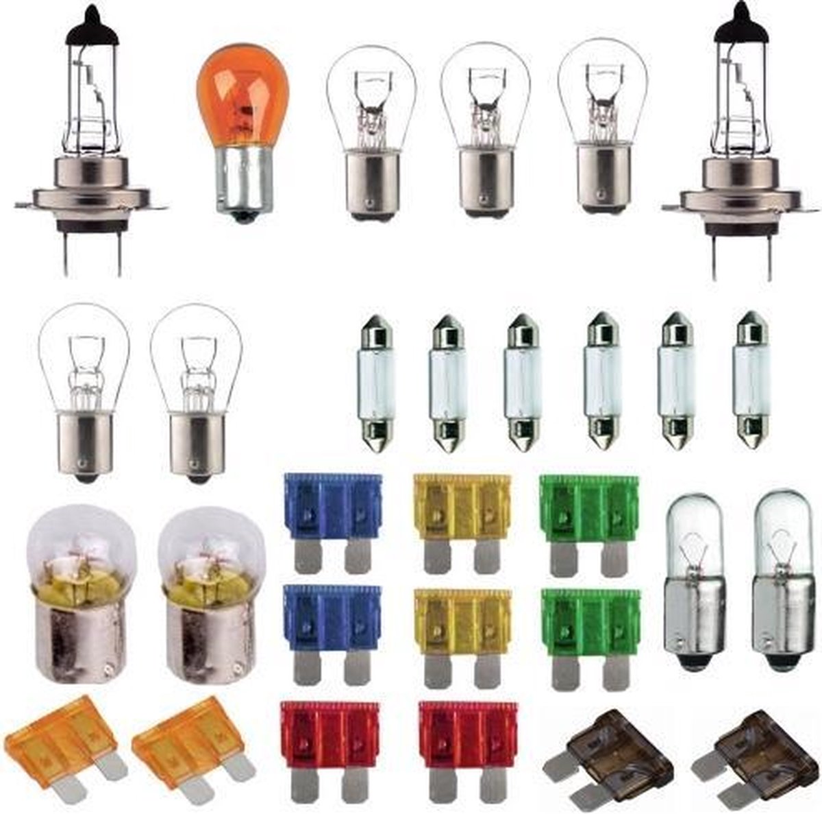 Udobnost vožnje zavisi i od pravilno funkcionirajućeg osvjetljenja. Spremni smo olakšati tvoje putovanje s našim setom žarulja za auto. Ovaj set sadrži sve što ti je potrebno za osvjetljavanje puta - 2x H7 auto lampe (55W), P21W auto svjetiljke bijele boje, P21.5W auto svjetiljke, R10W, R5W auto lampe, W5W auto lampe, i BA15S auto lampe. Također, uključujemo osigurače različitih amperaža kako bi tvoje iskustvo vožnje bilo sigurno. Osvijetli put s našim setom žarulja i vozi bez brige!