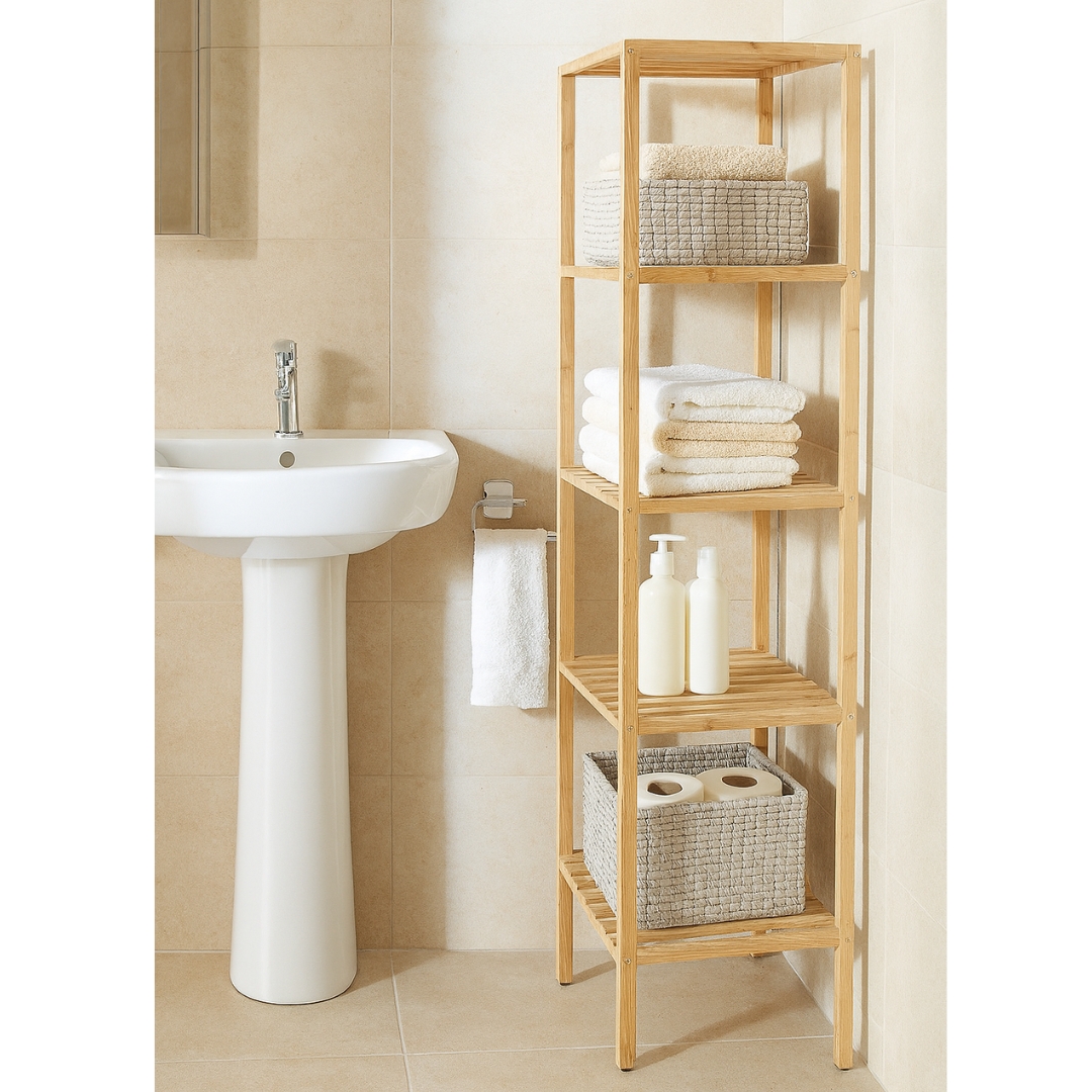 Alpina polica za kupatilo je elegantan i funkcionalan dodatak vašem kupatilu, dizajniran sa 5 nivoa za organizaciju vaših kozmetičkih proizvoda, peškira i ostalih potrepština. Izrađena je od visokokvalitetnog bambusa, čime se osigurava dugotrajnost i otpornost na vlagu.