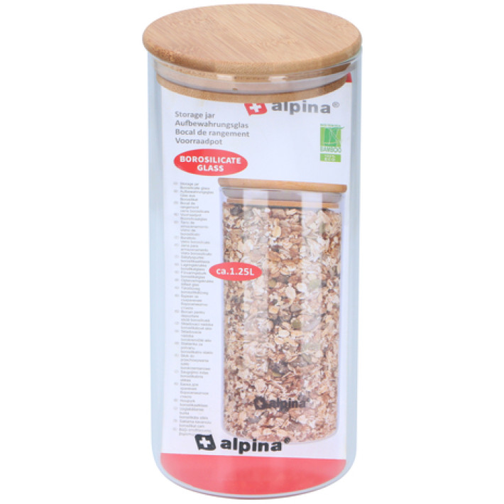 Posuda za hranu Alpina je praktična tegla za skladištenje s kapacitetom od 1,25l. Izrađena je od borosilikatnog stakla, što osigurava izdržljivost i sigurnost prilikom korištenja.