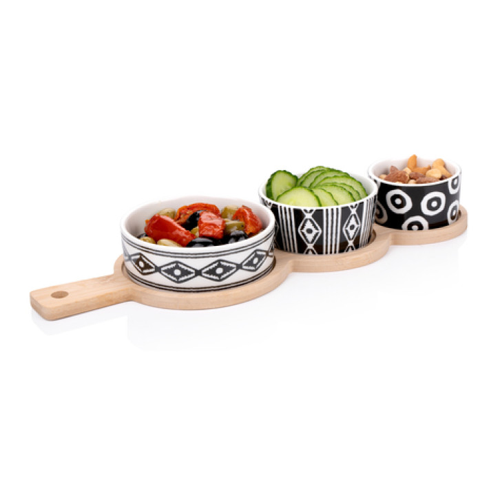 Treća zdjelica (fi 7x4 cm) je pogodna za posluživanje maslina, kiselih krastavaca, cherry rajčica ili drugih malih grickalica.