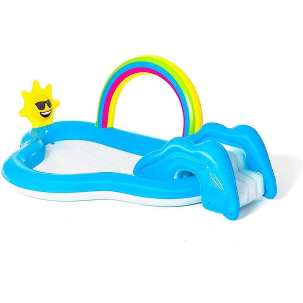 Bazen Rainbow za djecu, dimenzija 257x145x91 cm, model 53092, uključuje tobogan na napuhavanje koji pruža sate zabave i rashlađivanja tokom vrućih ljetnih dana. Ovaj šareni bazen od Bestway-a idealan je za djecu, nudeći sigurno i uzbudljivo iskustvo igranja na vodi.