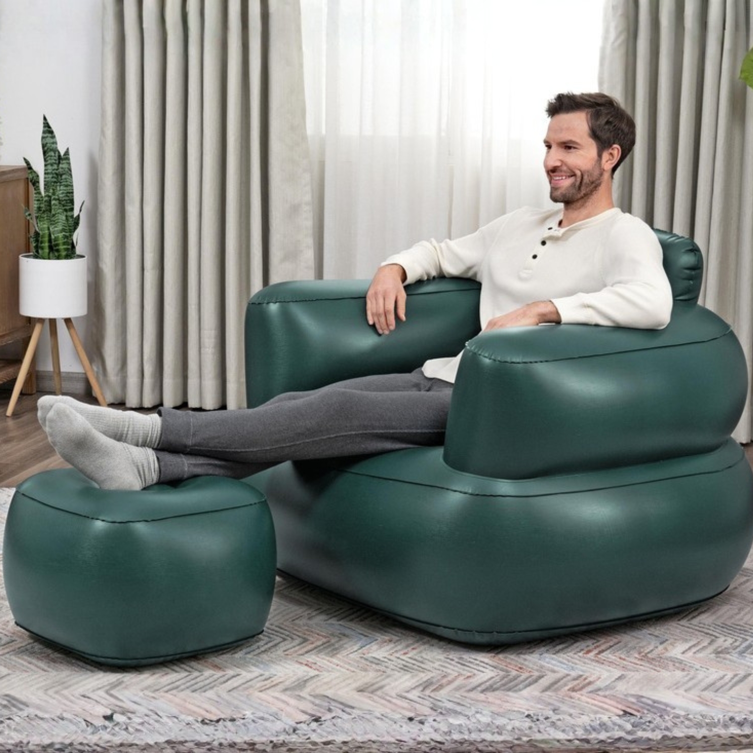 Ležaljka na napuhivanje dimenzija 107x99x80 cm model 75137 pruža udoban prostor za opuštanje, idealna za korištenje u zatvorenom ili na otvorenom. Izrađena je od izdržljivog materijala, a uz nju dolazi i praktičan tabure za dodatnu udobnost.