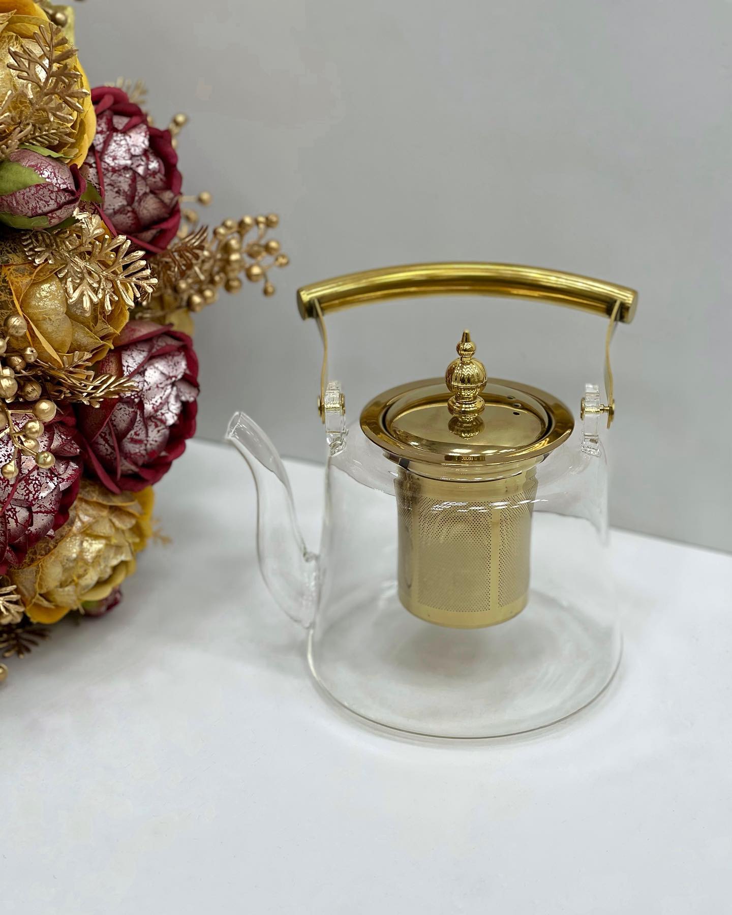 ČAJNIK STAKLENI SA ZLATNIM DETALJIMA 1,1L DP3326