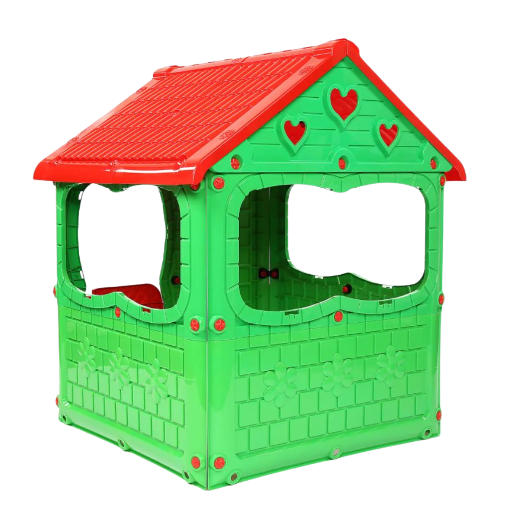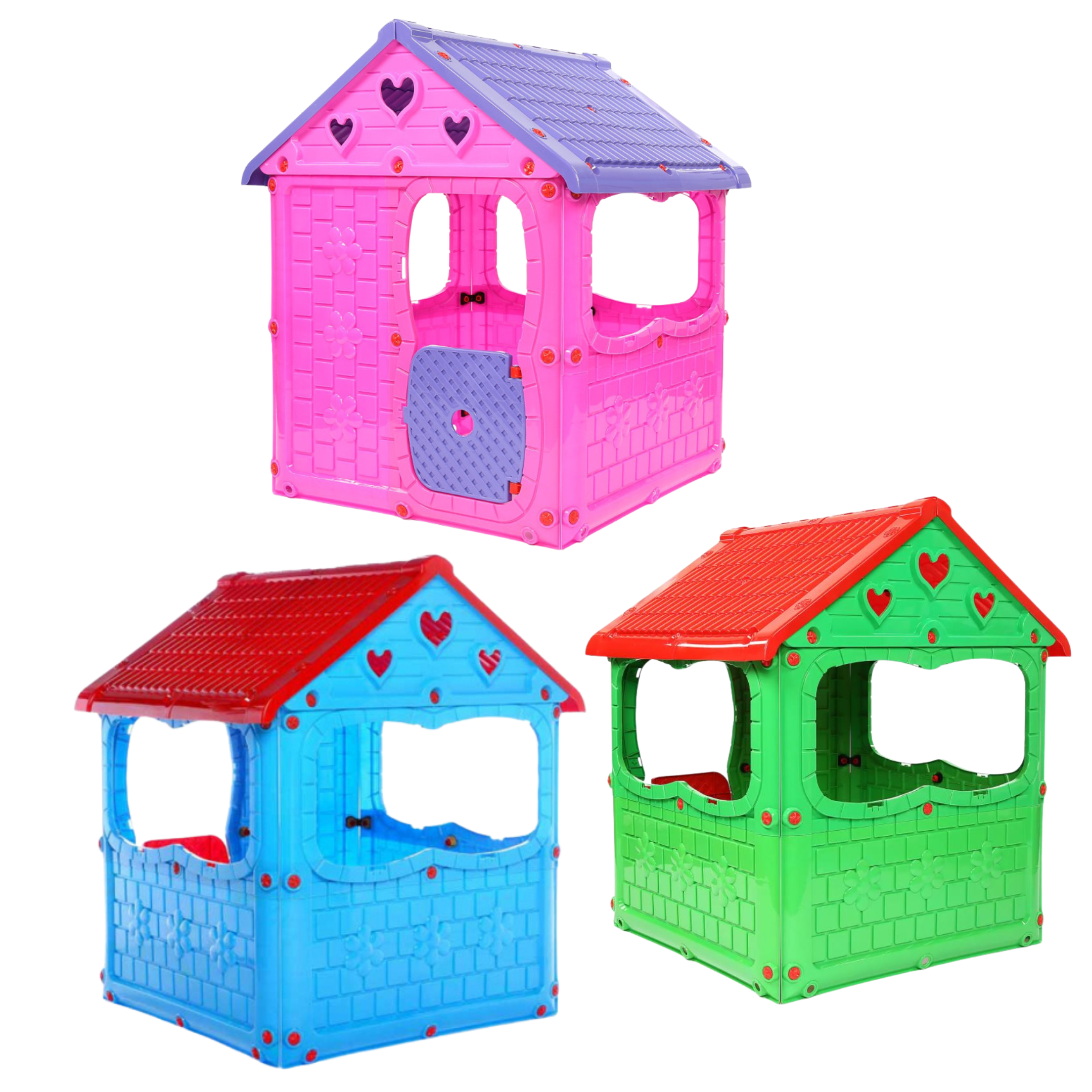 Igračka kućica je idealna za zabavnu igru s prijateljima, opremljena s prozorima i vratima koje djeca mogu otvarati i zatvarati. Dostupna je u bojama roze, zelena i plava, dimenzija 110 x 110 x 146 cm.
