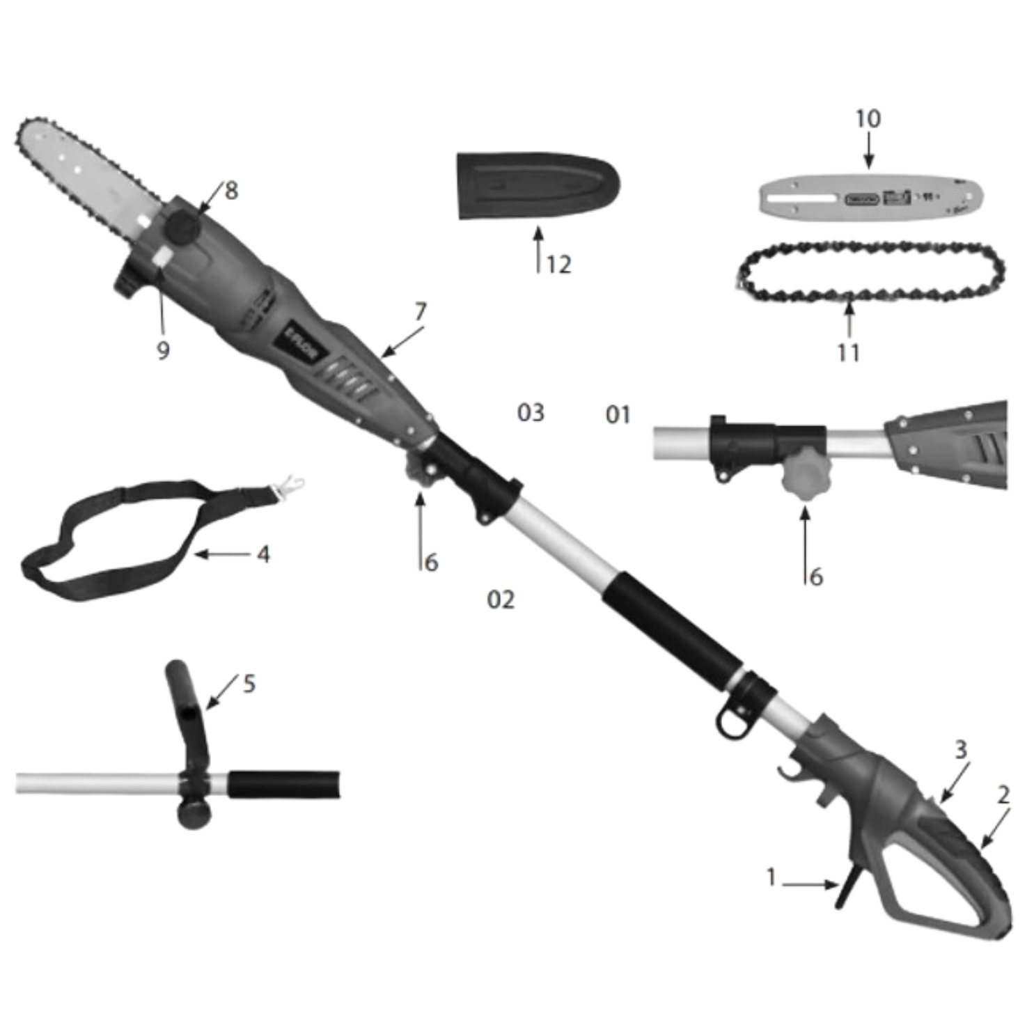 E-FLOR Električna teleskopska pila za grane HEA 710