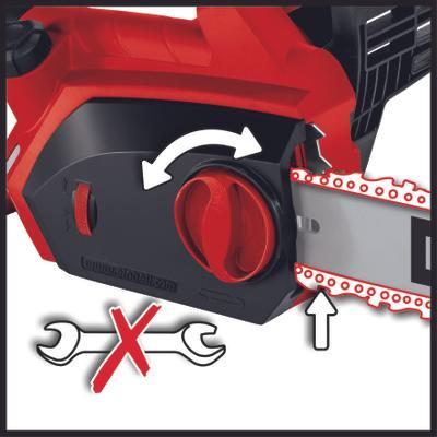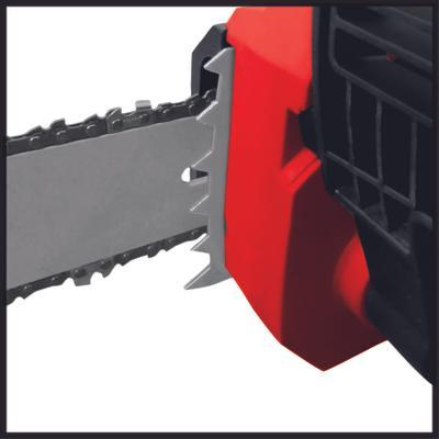 Einhell električna lančana pila GH-EC 2040 je praktičan, učinkovit alat i pouzdan pomoćnik za piljenje drva za ogrjev, za prorjeđivanje šipražja i za sječu malih stabala. Robusni mač i lanac osiguravaju optimalan učinak rezanja. Lanac se može zategnuti i mijenjati bez alata. Za dobar prijenos snage i dugi radni vijek tu je visokokvalitetan, robustan metalni prijenos. Zaštita od povratnog udara s trenutnom mehaničkom kočnicom lanca odmah će zaustaviti lanac ako se GH-EC 2040 naglo podigne. Veliki prozor olakšava provjeru količine ulja u spremniku za ulje automatskog sistema za podmazivanje lanca. Veliki otvor za punjenje koji uključuje brzi zatvarač osigurava jednostavno punjenje ulja.