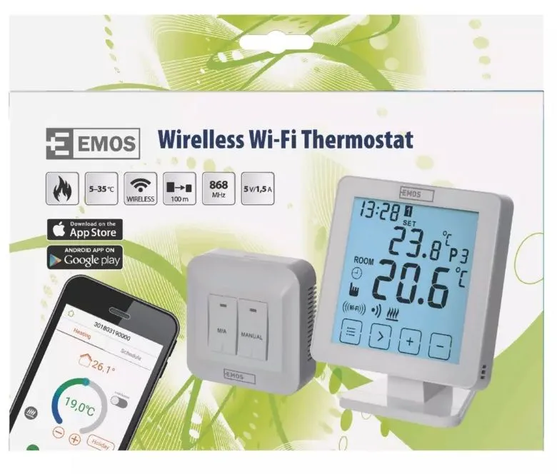 Pametni bežični termostat regulirat će uređaj za grijanje umjesto vas i tako održavati idealnu temperaturu u kući, stanu ili uredu. Emos P5604 nudi jednostavno upravljanje dodirom, ali također pruža kontrolu i upravljanje putem telefona s namjenskom aplikacijom koja je dostupna za iOS i Android.