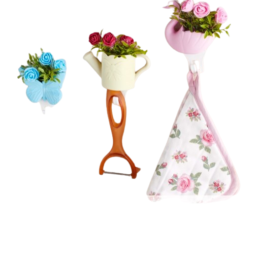 PVC DEKORACIJA KUKICA EVA5628 predstavlja multifunkcionalni dodatak vašem domu. Ova vaza sa cvijećem u kombinaciji sa kukicom za kuhinjske potrepštine donosi praktičnost i šarm u vašu kuhinju.