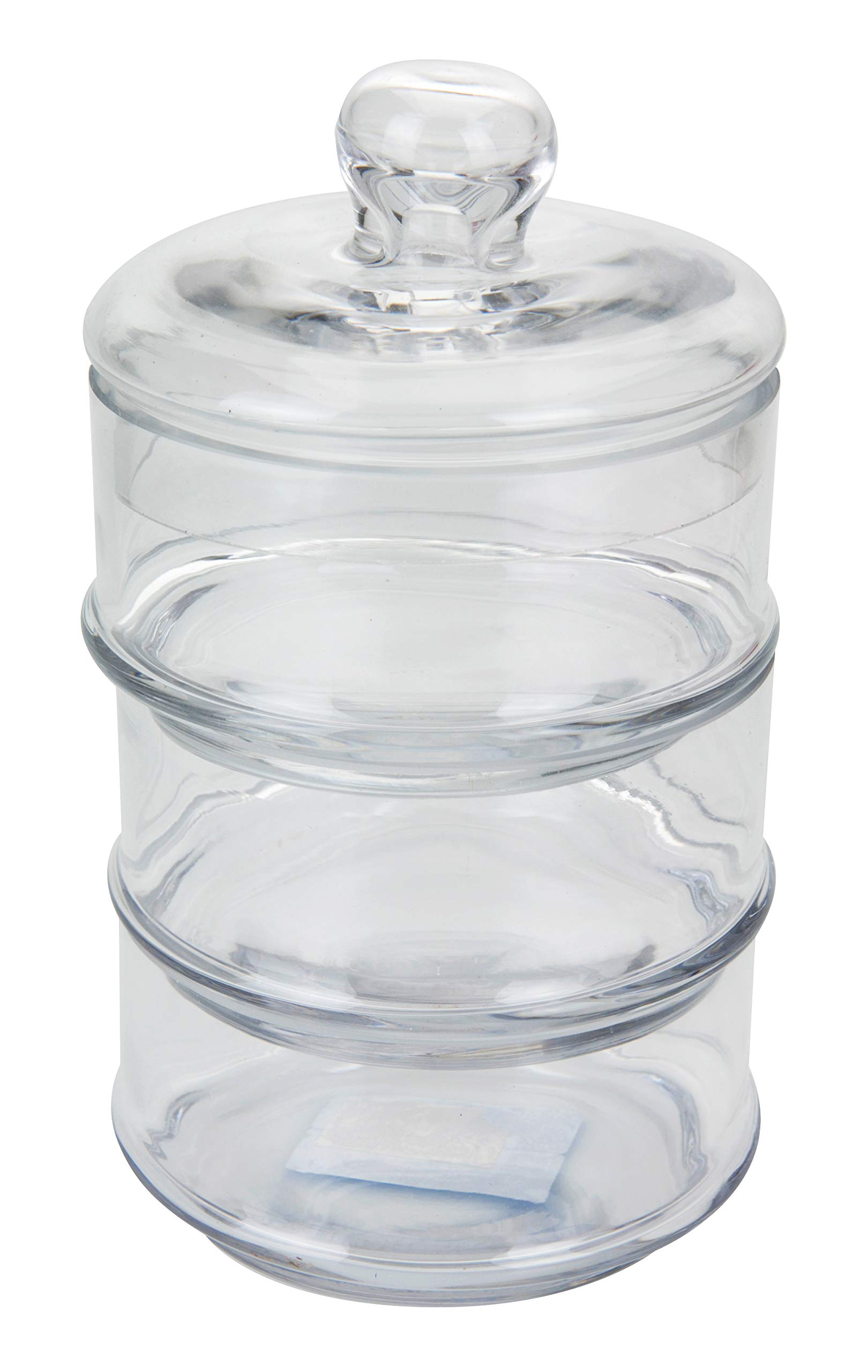 STAKLENA POSUDA 3/1 je posuda sa poklopcem namijenjena za pohranjivanje hrane. Posuda je izrađena od stakla, a dimenzija posude je 125x220 mm. Posuda dolazi u obliku 3 razine što omogućava odvajanje hrane.