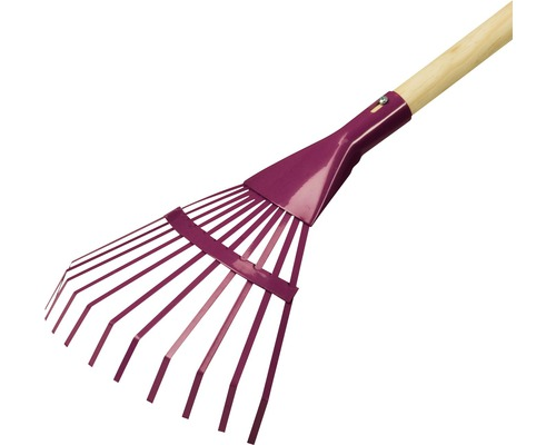 Dječije grablje za lišće crvene boje Freund, FSC i CE certificirana, stabilna su i sigurna, s ergonomičnom drškom prilagođenom djeci, širina grablja iznosi 300 mm, a dužina drške je 75 cm.