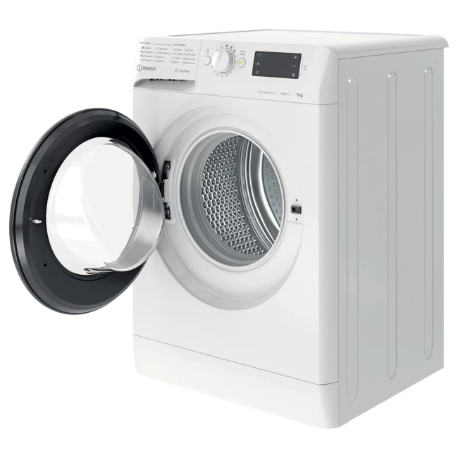 Indesit veš mašina MTWE 71484 WK EE je samostojeća bijela mašina standardnih dimenzija (59,5 cm širine i 54,0 cm dubine) s kapacitetom pranja od 7 kg veša i maksimalnom brzinom centrifuge od 1400 o/min. Nivo buke centrifuge iznosi 76 dB, a energetski razred je C s potrošnjom od 59 kWh/100 ciklusa, koristeći inverter motor za energetsku efikasnost i tihi rad.