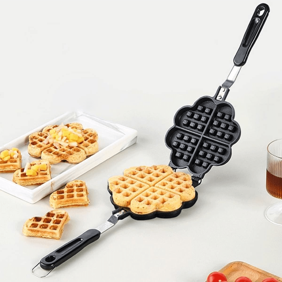 Kalup za vafl cvijeta je idealan dodatak za sve ljubitelje slatkih poslastica. Napravljen od visokokvalitetnog materijala, ovaj kalup je izdržljiv i omogućava jednostavno vađenje vafla bez lijepenja.