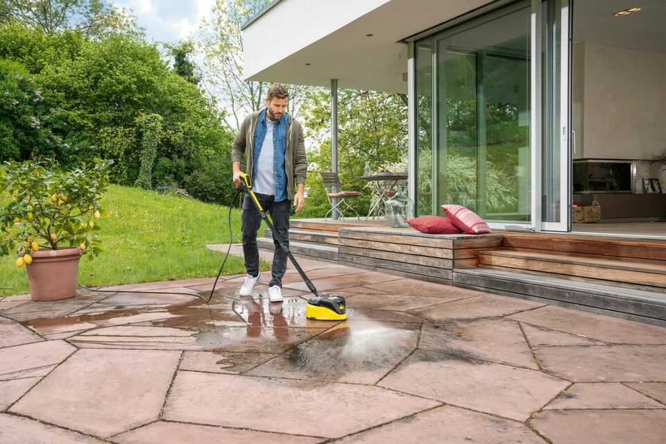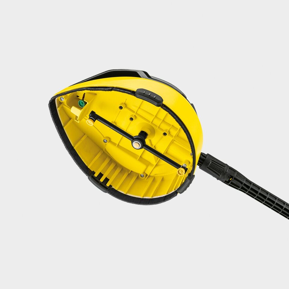 Karcherov površinski čistač T-Racer T7 PLUS 2.644-074.0 temeljito čisti čak i uglove i rubove zahvaljujući Power mlaznici, uključujući funkciju ispiranja za učinkovito čišćenje velikih površina bez prskanja. Rotirajuća ruka Twin Jet omogućuje brzo uklanjanje nečistoće s velikih površina, čime se štedi oko 50% vremena u usporedbi s čišćenjem mlaznom cijevi. Dodatna Power mlaznica omogućuje učinkovito čišćenje uglova i rubova, dok integrirana mlaznica za ispiranje olakšava postupak ispiranja otopljene prljavštine, eliminirajući potrebu za dodatnim radom. T-Racer je lagan za manevrisanje zahvaljujući Hovercraft efektu i jednostavno se upravlja različitim funkcijama pomoću nožnog gumba, što omogućuje brzo čišćenje okomitih površina poput garažnih vrata. Kompatibilan je s visokotlačnim čistačima razreda K 4 do K 7.