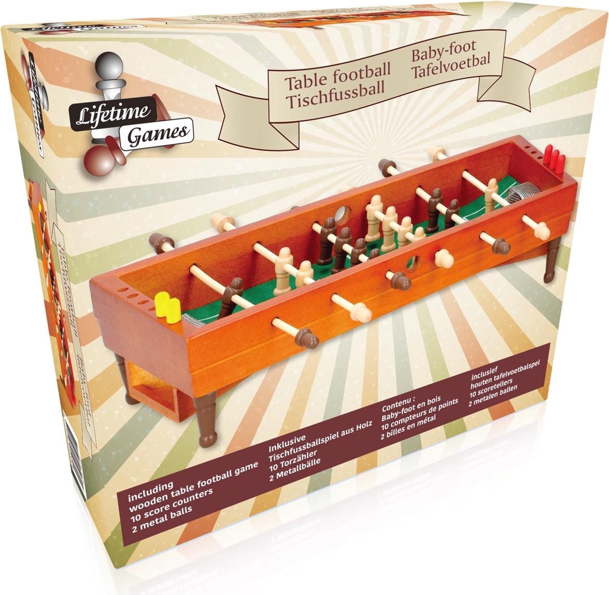 LIFETIME GAMES PUCOMET, STOLNI NOGOMET dimenzija 24x29x8,3 cm, je izvanredna drvena igra stonog fudbala koja obećava neizmjerno zadovoljstvo i izazov u druženju s prijateljima. Ovaj mini stolni fudbal se smjestio u čvrst drveni sto i dolazi sa 10 brojača te 2 metalne lopte za potpun užitak. Uz prirodnu boju drva i potrebnu montažu (6 štapova i 14 minifigura), ovaj proizvod nudi sate zabave i izazova igračima stonog fudbala.