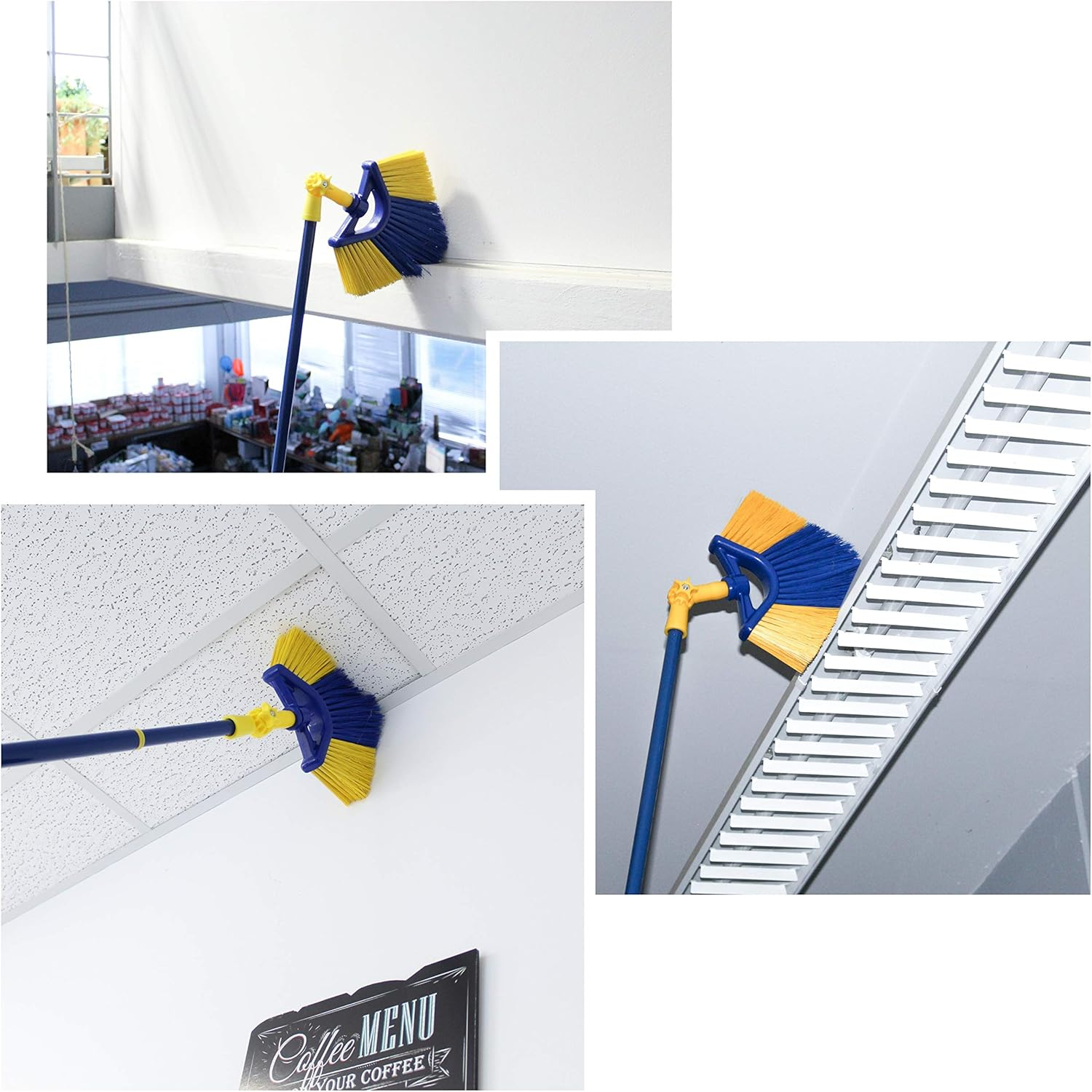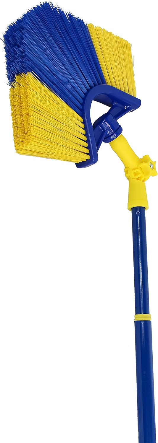 Metla sa zglobom i teleskopskom drškom (žuta/zelena), rastezljiva od 155 do 429 cm, sa 90° kutnim adapterom, idealna za lako čišćenje zidova, plafona, teško dostupnih mjesta poput stepeništa ili oluka, pogodna za unutrašnju i vanjsku upotrebu.