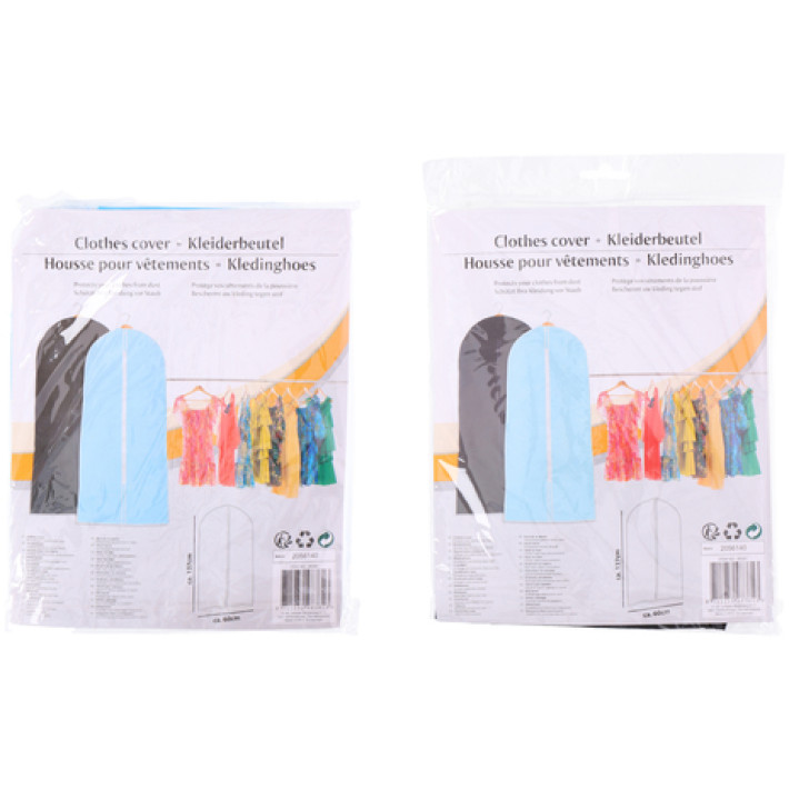 Navlaka za odjeću dimenzija 138 x 60 cm, izrađena od materijala koji se naziva PEVA. PEVA je otporna na vodu i pruža zaštitu od prašine, vlage i drugih nečistoća. Ova navlaka je namijenjena za spremanje odjeće i održavanje odjevnih predmeta čistim i urednim. Zahvaljujući svojoj veličini, može obuhvatiti veći broj odjevnih komada, čime čuva njihovu kvalitetu i sprečava oštećenja. Praktičan i pouzdan izbor za organizaciju garderobe.