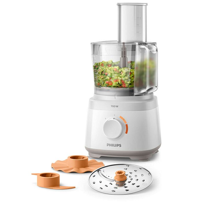 Philips Multipraktik HR7310/00 je snažan uređaj sa moćnim motorom koji omogućava različite kuhinjske zadatke. S njegovom višestrukom funkcionalnošću, može se seći, rendati, miješati, mutiti i umutiti različite sastojke za raznolike obroke. S kapacitetom posude od 2,1 litara i oštricama od nerđajućeg čelika, ovaj multipraktik je idealan za pripremu većih količina hrane, uz dodatke koji proširuju njegovu funkcionalnost. Također, nudi sigurnost kroz sistem zaštite od preopterećenja i praktičnost kroz lako čišćenje, sve u kompaktnom dizajnu koji štedi prostor u kuhinji.