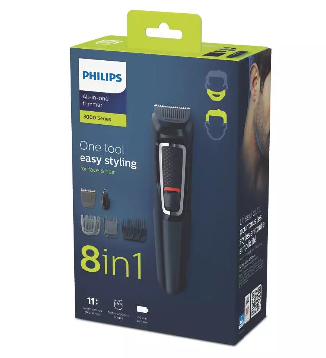 Philips višenamjenski trimer praktično podrezuje i oblikuje dlačice na licu te kosu. Koristite trimer bez češlja za postizanje čistih, oštrih linija oko brade, vrata i kose. Oštrice trimera same se oštre i čak nakon 3 godine upotrebe ostaju jednako oštre kao i prvog dana. Brzo dotjerajte lice i kosu s pomoću šest ojačanih štitnika za rezanje, 2 češlja za trodnevnu bradu za podrezivanje od 1 mm i 2 mm, 1 prilagodljivi češalj za bradu i 3 češlja od 9 mm, 12 mm i 16 mm.