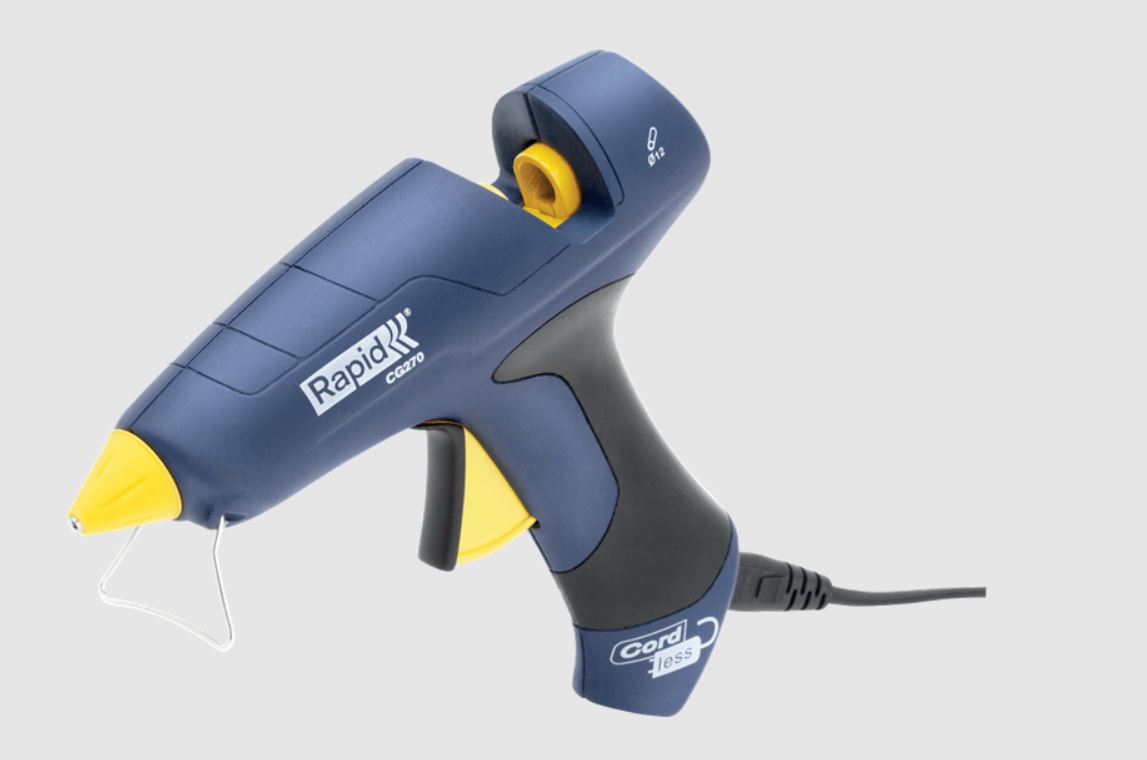 Rapid pištolj za vruće lijepljenje CG270 je snažan alat (25 W, 250 W) kompatibilan s 11-12 mm štapićima za lijepljenje. Brzo isporučuje ljepilo (do 400 g/h), dolazi s 10 štapića ljepila, ima odvojivi kabel za do 7 minuta bežičnog rada, te dolazi s koferom za jednostavno skladištenje i transport. Ovaj alat je praktičan za različite projekte.