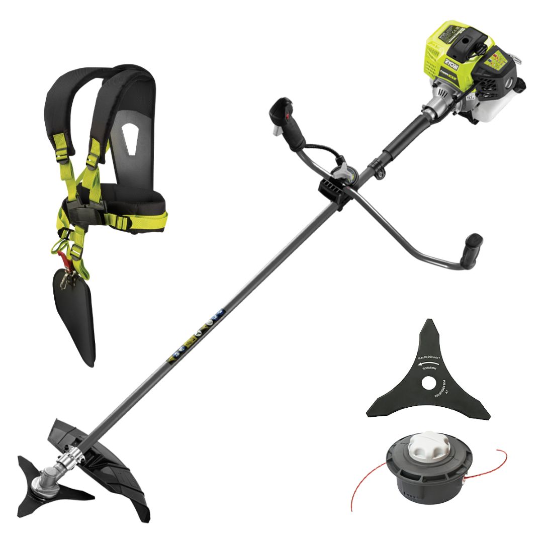 RYOBI MOTORNI TRIMER RBC52FSBO 52CC je snažan trimer opremljen PowrXT™ 2-taktnim motorom od 52cc, snage 1,9 KS, idealan za efikasno košenje. EasyStart™ karburator omogućava jednostavno paljenje, dok ekološki prihvatljiva tehnologija motora smanjuje emisije. Sa velikom širinom rezanja (glava konca 43 cm, oštrica 26 cm), trimer osigurava brz napredak u radu. Opremljen je 2u1 Tri-Arc+™ rezačem s 3 zuba i dodatnom ReelEasy™ glavom s automatskim napredovanjem i dvostrukom žicom za brzu promjenu. Stabilna baza omogućava optimalan prijenos snage motora na reznu glavu, a udoban pojas Vertebrae™ sa zaštitom bokova i brzim otpuštanjem pruža dodatnu udobnost. Razdvojena osovina olakšava transport i skladištenje.