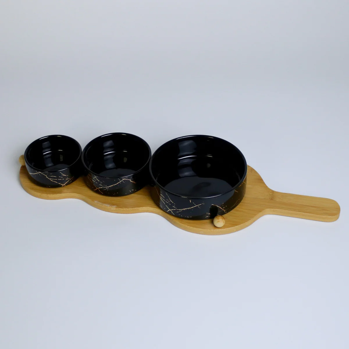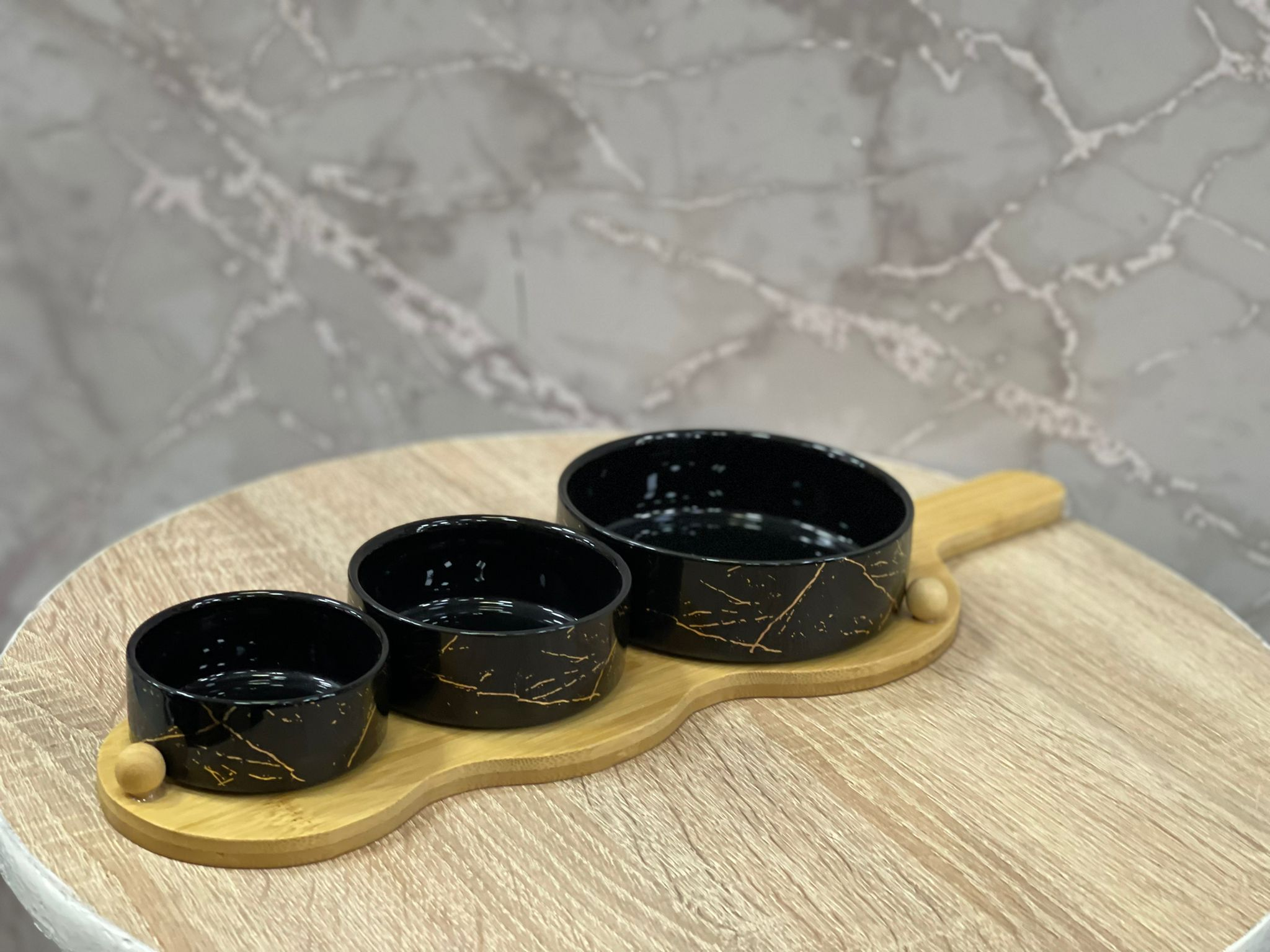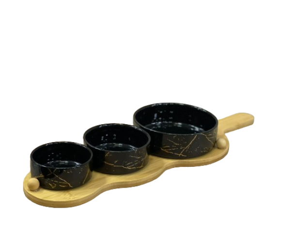 SET ZA POSLUŽIVANJE NA DRVENOM PLADNJU CRNE DP3528