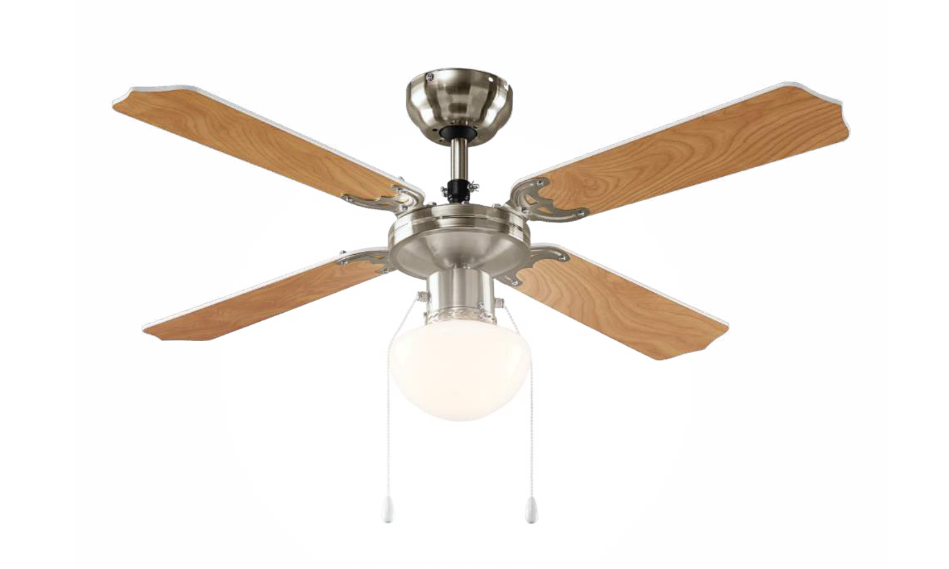 Stropni ventilator sa svjetlom kombinuje funkcionalnost i moderan dizajn. Izrađen od čelika u elegantnoj boji, pruža optimalnu rasvjetu (470 lumena) uz E27 grlo. S dužinom od 1066 mm i visinom od 415 mm, idealan je za osvježenje i osvjetljenje prostora. Ima IP20 zaštitu, što ga čini pogodnim za unutrašnju upotrebu.