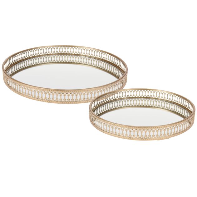 Elegantna tacna sa ogledalom dostupna je u dvije veličine 3 x 30 cm i 3 x 40 cm. Tacna je zlatne boje, dok je dno od stakla i ima odsjaj ogledala.