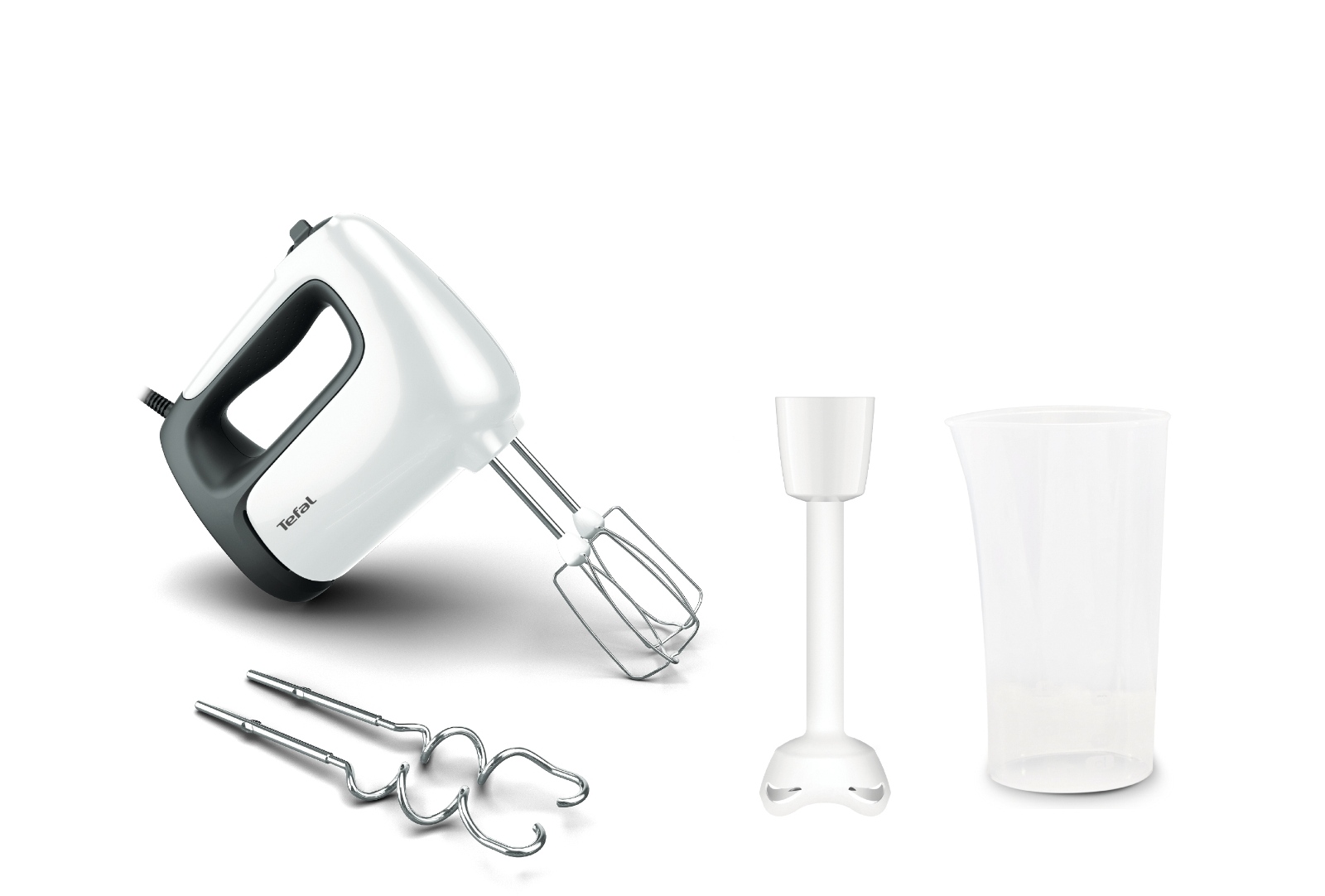 Tefal ručni mikser Prepmix +, model HT461138, je izuzetno snažan uređaj sa 500 W motora, idealan za različite kuhinjske zadatke. S pet brzina i turbo funkcijom, ovaj mikser pruža potpunu kontrolu i prilagodljivost za razne recepte, od umaka do tijesta. Mutilice i kukice su izrađene od visokokvalitetnog nehrđajućeg čelika, što omogućava kvalitetno miješanje i umućivanje različitih sastojaka. Nastavak za štapni mikser čini ga praktičnim za usitnjavanje povrća, a jednostavna upotreba i mogućnost pranja u mašini za posuđe čine ovaj mikser praktičnim za svakodnevnu upotrebu. Osim toga, dugotrajnost i dostupnost rezervnih dijelova osiguravaju da će ovaj mikser služiti dugi niz godina.