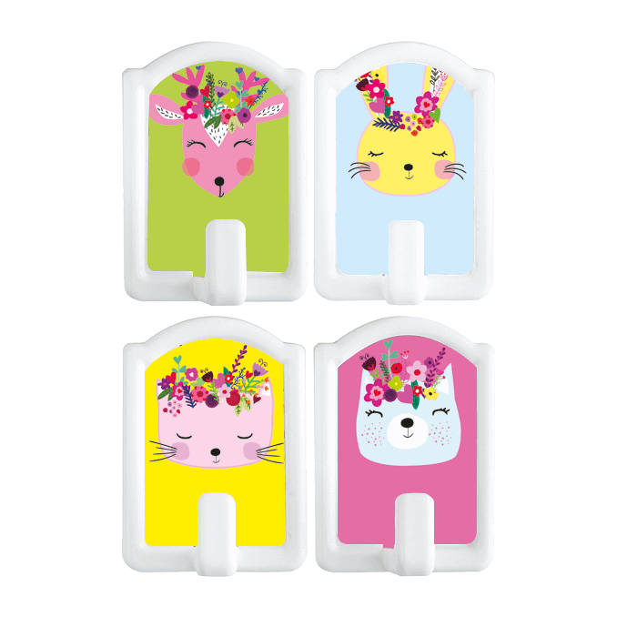 Dekorativni set od 4 kukice sa različitim uzorcima možete koristiti u kupaonici ili kuhinji.