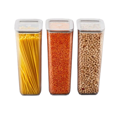 KVADRATNI ORGANIZER SUDE 3X2000ML koji se sastoji od tri posude od po 2000 ml. Svaka posuda ima kvadratni oblik, s dimenzijama 14,5 cm x 14,5 cm x 15 cm, što ih čini dovoljno velikim da stanu u većinu kuhinjskih ormarića ili ladica.