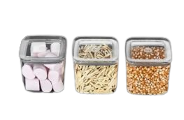 KVADRATNI ORGANIZER SUDE 3X700ML je praktičan i funkcionalan organizator za kuhinju koji se sastoji od tri posude od 700 ml, svaka sa svojim poklopcem. Ove posude su idealne za organiziranje raznih namirnica i pribora za kuhinju, poput začina, keksa, tjestenine, riže, kave ili čaja, što vam omogućava da održavate kuhinju urednom i organiziranom.