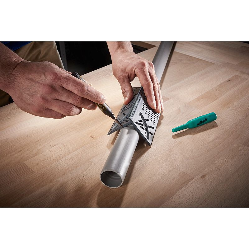 Kutno vinklo 3D Wolfcraft PVC je alat dizajniran za savijanje PVC cijevi u opseg od 45 do 90 stepeni. Ovaj alat je posebno koristan za instalaciju vodovodnih sistema, klimatizaciju ili bilo koju drugu primjenu koja zahtijeva savijanje PVC cijevi pod određenim uglom.